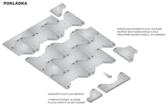 Mobilní plocha určená pro provoz s těžkým zatížením. Vhodná jako např. plochy pro pohyb těžké dopravní a stavební techniky.