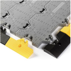 K dispozici jsou nájezdy v černé a žluté barvě (lemovací dílce), které eliminují nebezpečí zakopnutí a umožňují pohodlný nájezd na mobilní podlahu.